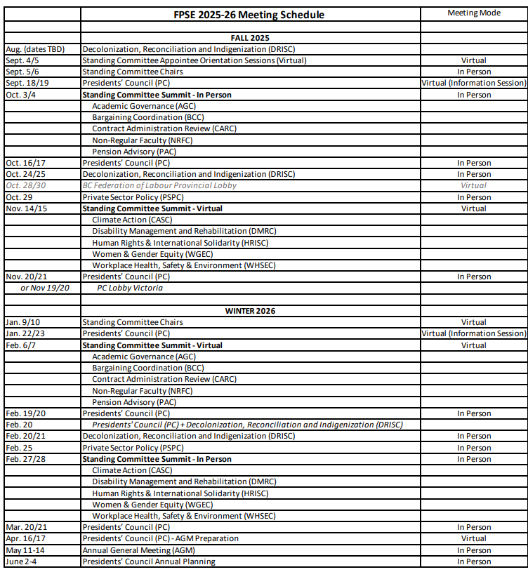 FPSE Meeting Schedule for 2025-2026